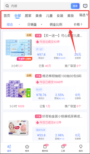 3、在商品库页面通过分类排序等功能,筛选商品信息。