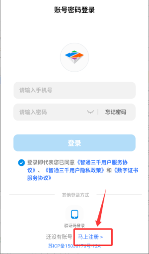 2、在该页面点击马上注册选项,跳转至信息填写界面。