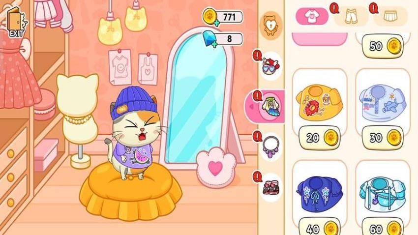 3、提供大量时装与配饰,通过收集金币可为猫咪购买不同风格的服装,打造独一无二的时尚造型。