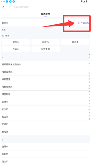 1、开启定位功能快速确定当前城市,也可自主选择城市。
