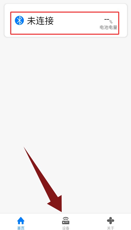 2、首页显示连接状态与电量信息,点击设备按钮可跳转管理。