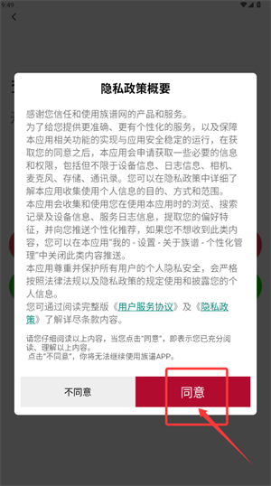 1、启动应用后,在隐私政策提示框中点选“同意”进行授权。