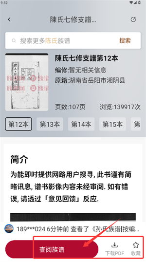 3、定位目标族谱后,点击“查阅族谱”即可浏览详细谱系内容。