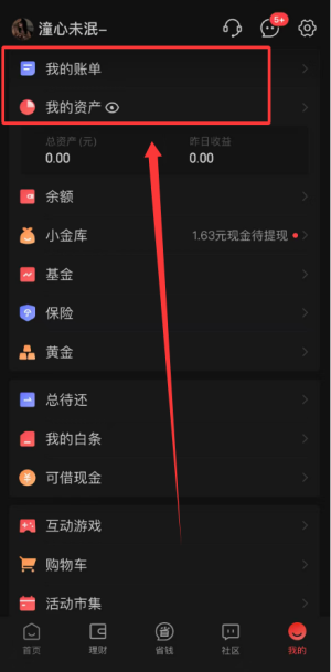 个人资产管理,以及账单明细都可以在这里查看。