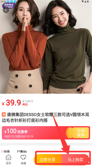 3、选定商品后进入页面,即可快速分享或购买完成下单。