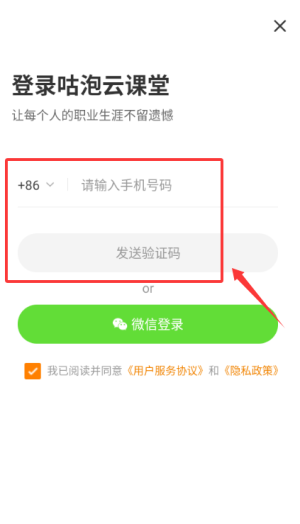 1、于登录页输入手机号发送验证码填写,或选择微信登录完成验证。
