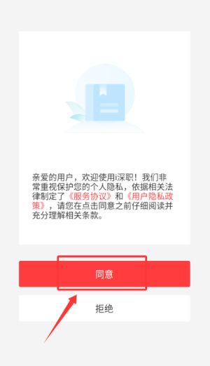 1、打开应用查看服务协议,点击同意按钮进入下一页面。