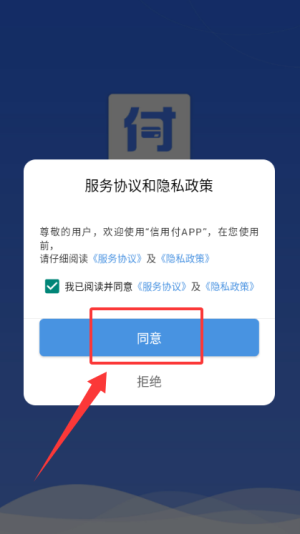 1、打开应用勾选服务协议,点击同意按钮进入引导页面。