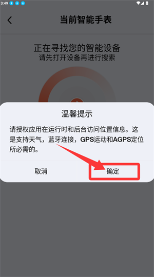 1、在设备页面点击按钮,跳转到手表搜索界面。