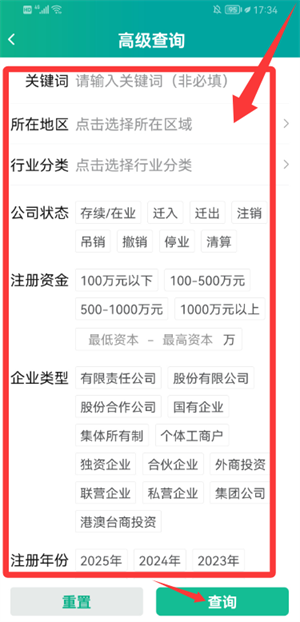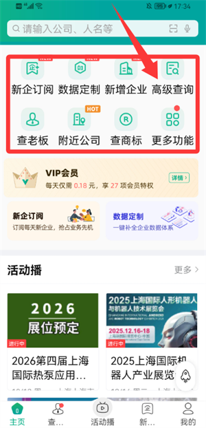 1、增加“定位/搜附近”筛选,方便快速查询附近企业;