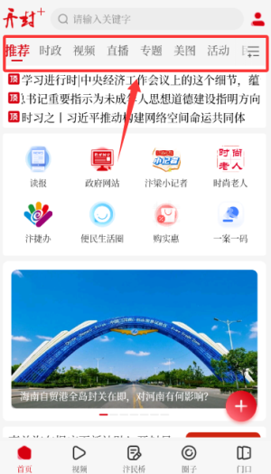 3、登录成功进入首页,查看推荐资讯或使用导航栏服务。