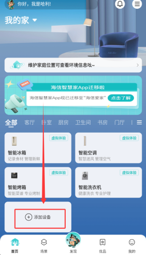 3、通过首页的指定功能入口,可以进行新智能设备的搜索与添加。