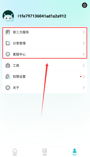4、在个人中心页面,能够管理第三方服务、设置分享权限并联系客服支持。