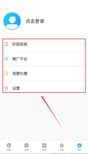 4、我的页面提供好望商城入口、推广平台、意见反馈及个人设置等选项。