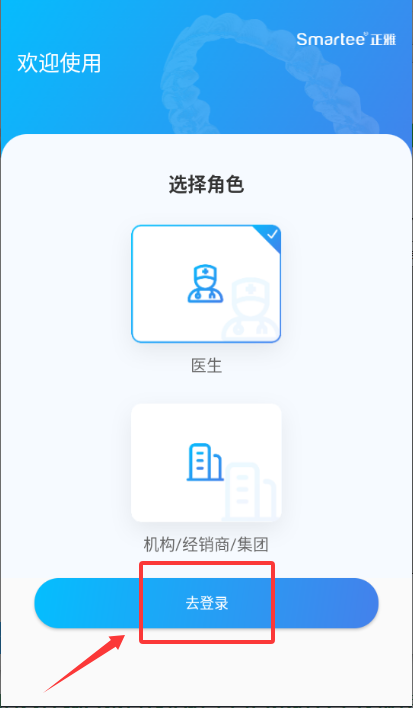 2、在角色选择页选定医生角色,点击去登录跳转至界面。