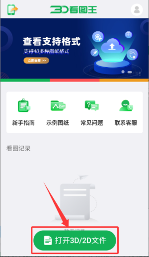 3、进入首页后点击打开文件按钮,选择图纸文件查看。