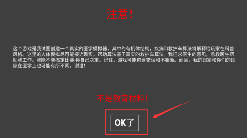 1、点击OK了按钮,确认游戏注意事项。
