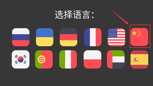 2、在语言选择界面点击中国国旗图标。