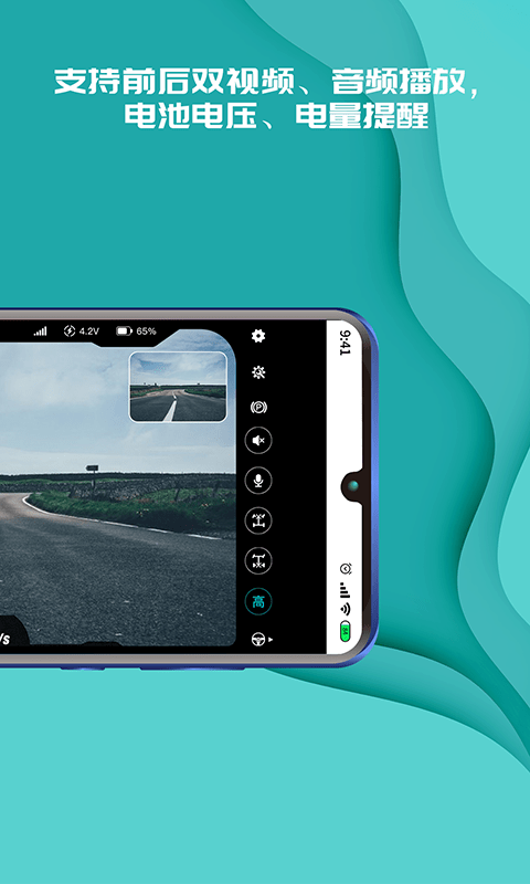支持前后双视频、音频播放,电池电压,电量提醒