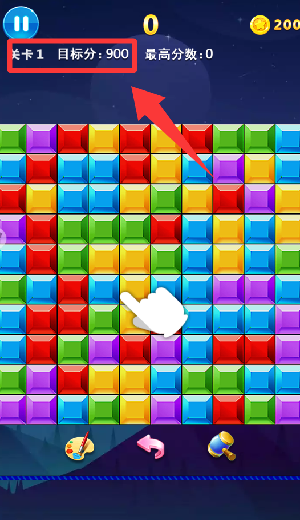 3、进入游戏这关的目标分数是900,超过就可以通关了。