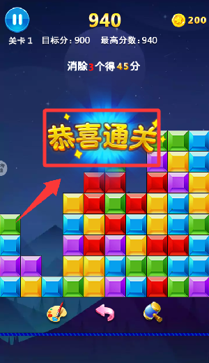 4、恭喜你通关了,把剩余的方块消灭吧。