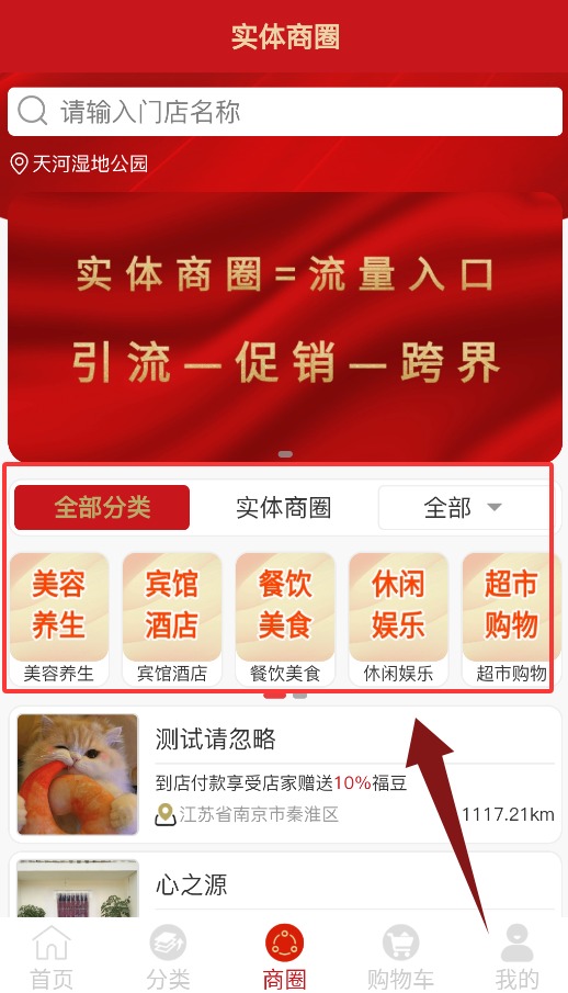 4、商圈界面涵盖美容养生、餐饮美食、休闲娱乐等全部分类。