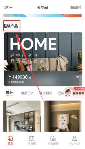2、页面同时展示整装全屋产品系列,便于用户一站式浏览与选购所需材料。