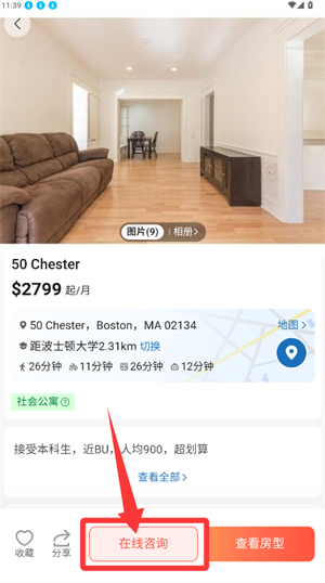 3、浏览信息后点击在线咨询,可了解相关房屋细节。