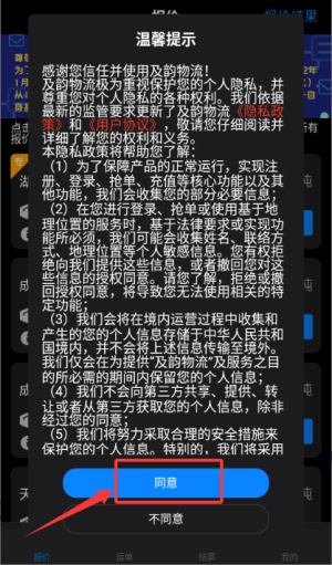 1、打开应用阅读温馨提示,点击同意按钮进入登录页面。