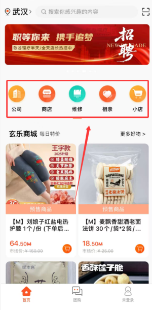 3、首页提供公司信息、商店列表、维修服务、相亲平台及小店推广等多个分类入口。