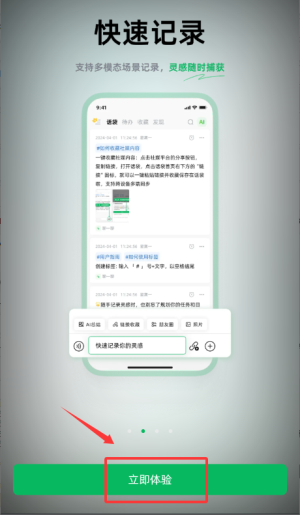 1、启动话袋应用,先在快速记录页点击立即体验按钮进入下一步。