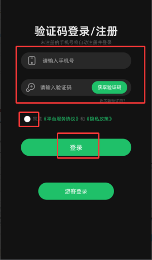 3、在登录界面输入手机号及验证码,勾选协议后点击登录完成操作。