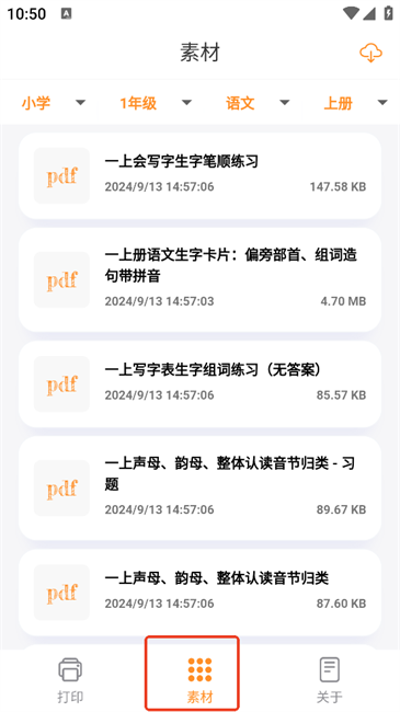6.在【素材】可找到想要下载的材料