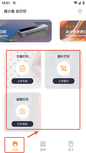 1、在主界面找到文档打印区域,点击上传文档。