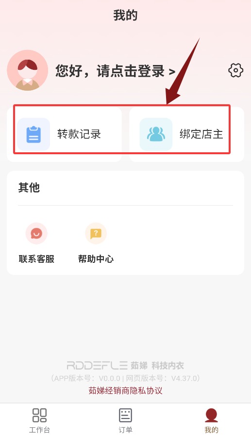 4、个人中心可查看交易转换记录,并支持绑定店主功能。