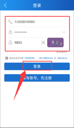 1、于登录页填写手机号密码及验证码,勾选协议后点击登录进入程序。