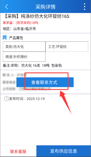 3、在结果中选择目标信息进入详情页,点击查看联系方式获取联络方式。