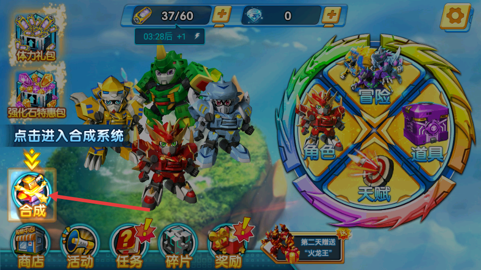 2、收集资源强化角色与装备,为战士配备炫酷的神器和强力配件。