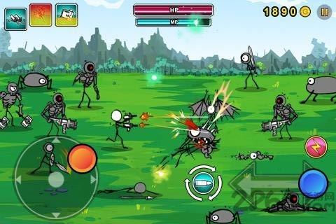 卡通火柴人战争中文版(Cartoon Wars: Gunner)是以卡通火柴人为主题的射击游戏,需要玩家通过触屏控制游戏角色,以各种射击武器,与各种魔怪进行战斗.在操作上较其他触控游戏略有不同,需要玩家以拖拽的形式进行射击(可拖拽后不放,持续发射),且每个关卡的可移动范围都非常有限,可玩性相当高.