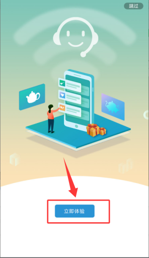 1、打开应用后在功能介绍页点击立即体验按钮,进入商品分类主界面。