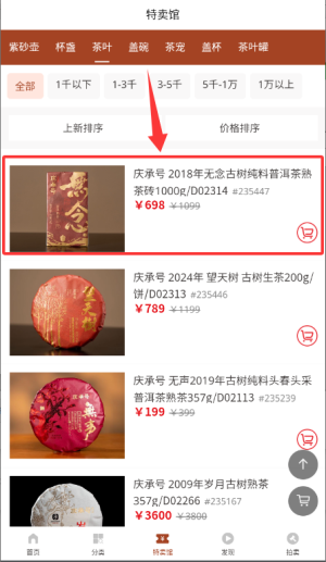 2、在分类页面选择茶叶等选项,即可查看对应商品列表。