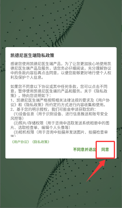 1、打开应用后查看隐私政策相关条款,确认后点击同意进入后续操作界面。