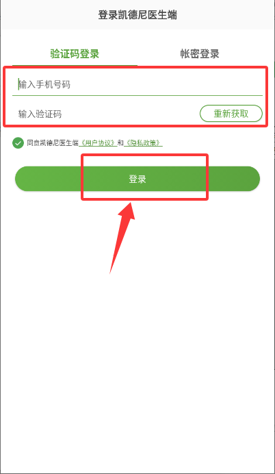 3、回到登录界面选择验证码登录,输入信息后点击登录即可使用。
