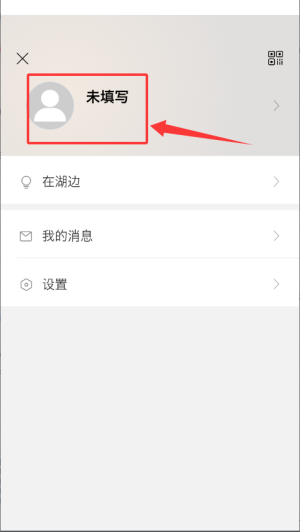 1、进入湖畔应用,点击顶部用户图标可在弹窗中补充个人资料。