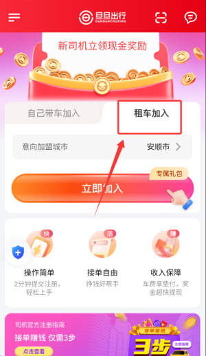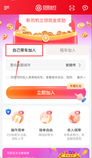 2、使用个人自有车辆申请加入,完成资质审核与车辆认证。