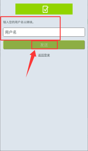 2、在找回页填写用户名后点击红色发送按钮,完成密码重置操作。