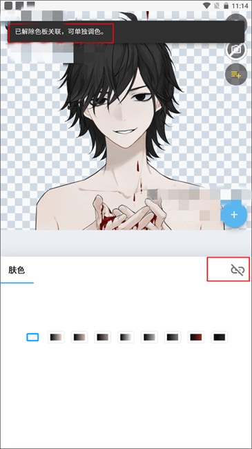 3、这时页面下方就可以对肤色的颜色进行自定义调色了。如果想单独进行调色,就可以点击肤色右边的链接功能图标,上方就会有文字提示你可以单独调色。