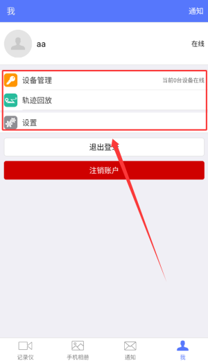 4、我的页面集中管理已连接设备、轨迹历史回放及各项系统参数设置选项。