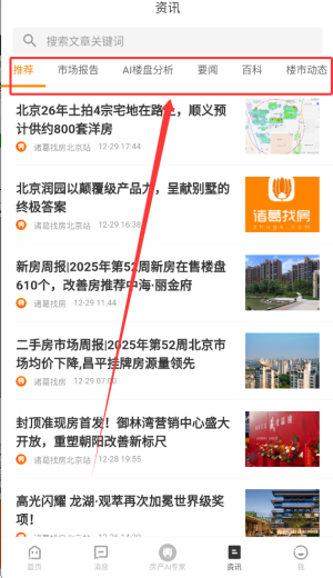 3、资讯板块提供市场分析报告、行业要闻、房产百科知识及楼市动态等专业信息。