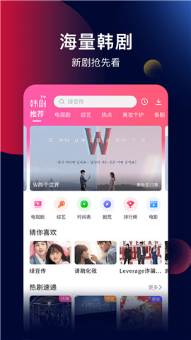 韩剧TV,是一款热门的韩国电视播放器,十大韩剧网鼎力推荐,韩剧爱好者追剧追星的首选app。大量收集热门韩国电视剧,综艺,电影,MV等优秀资源。